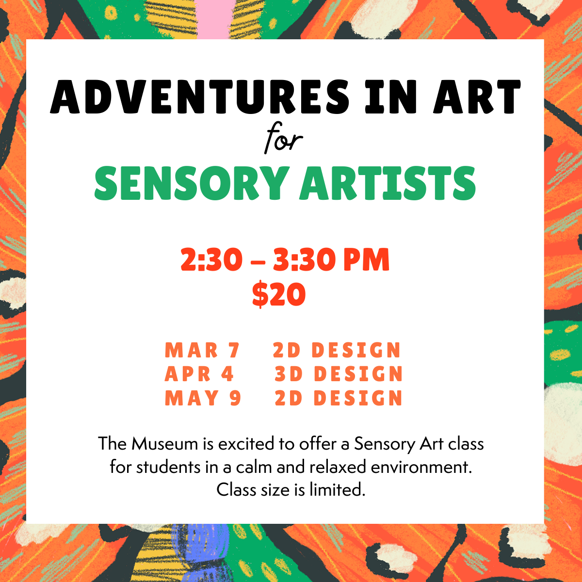 The Museum is excited to offer a Sensory Art class for students in a calm and relaxed environment.