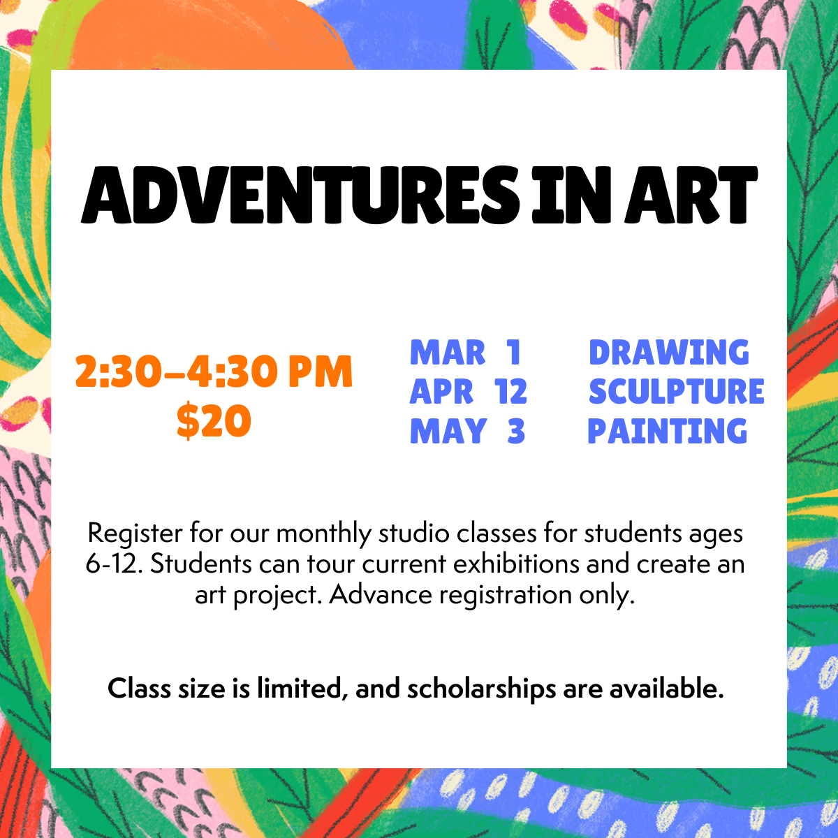 Join us for studio-style art classes at the Museum for students ages 6-12. Advance registration is required. You can register for this class here.