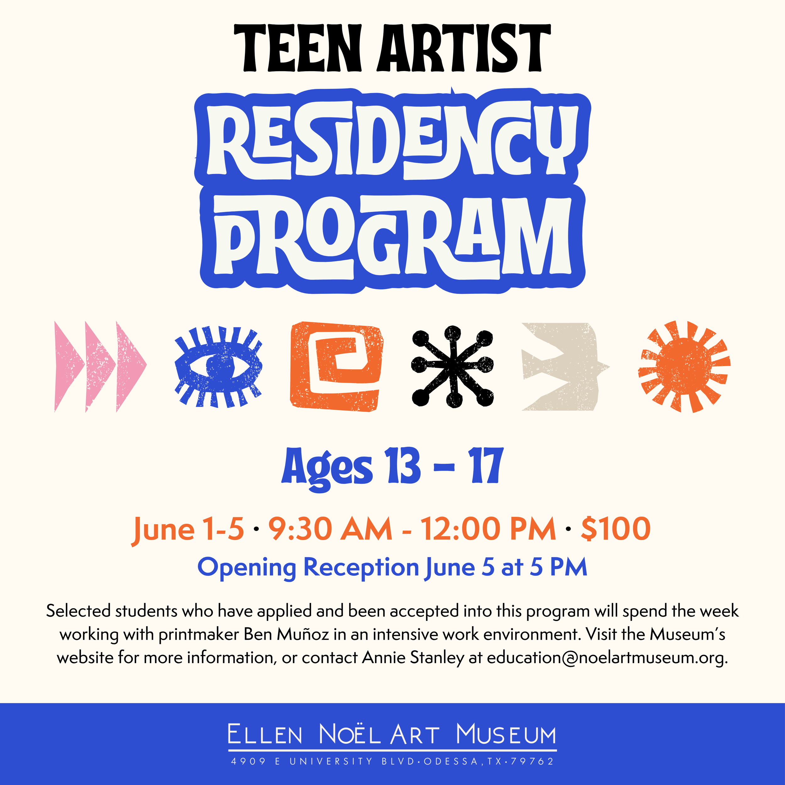 For more information on tickets or tables, contact Kiana Manchester at events@noelartmuseum.org or 432-550-9696 ext. 217