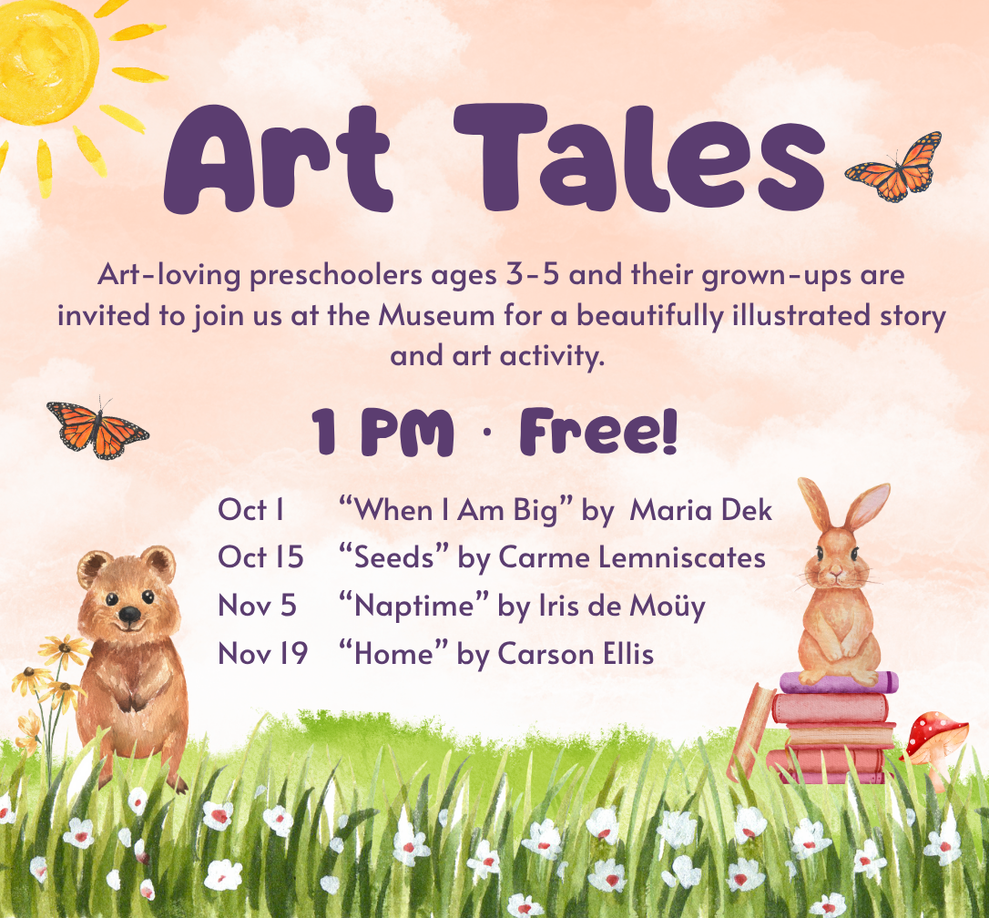 Join us at the Museum for Art Tales! Art-loving preschoolers ages 3-5 and their grown-ups are invited to join us at the Museum for a beautifully illustrated story and art activity.