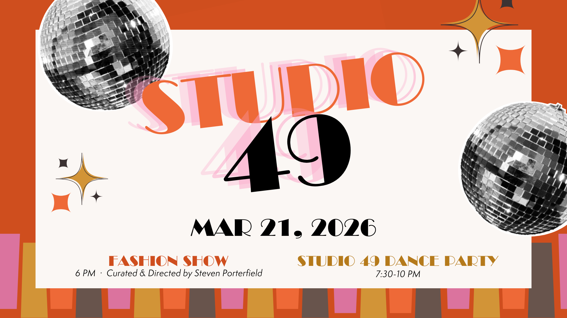 From 6:00–7:30 PM, enjoy an exclusive fashion show curated by Steven Porterfield, featuring bold, era-inspired looks as models descend our grand staircase in a stunning runway presentation. From 7:30–10:00 PM, the evening transforms into a themed dance party inspired by the iconic nightlife of the time. Costumes are strongly encouraged, prizes will be awarded for the best dressed, and guests are invited to bring their best dancing shoes for a glamorous night of fashion, music, and movement.