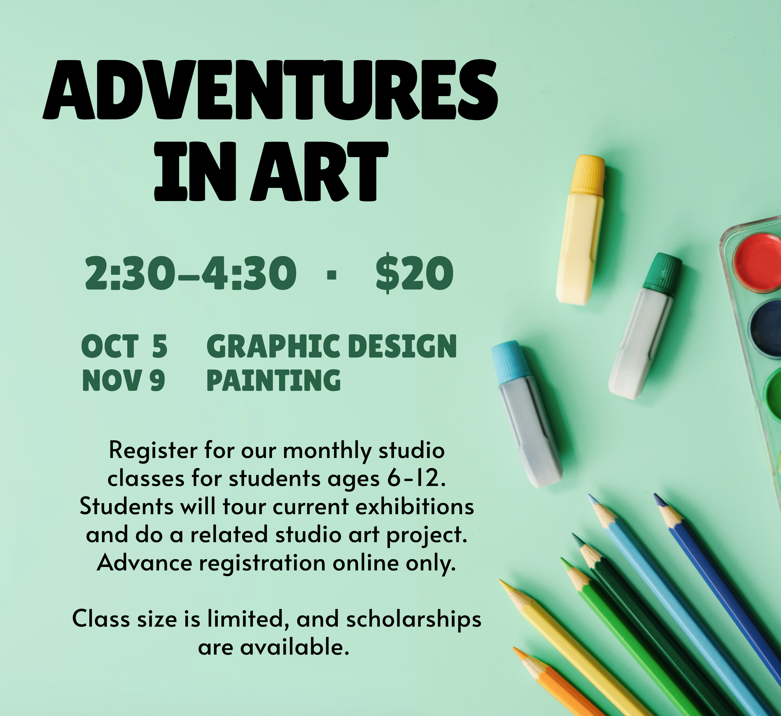 Please note: Adventures in Art classes for October & November are SOLD OUT! More dates coming soon!
