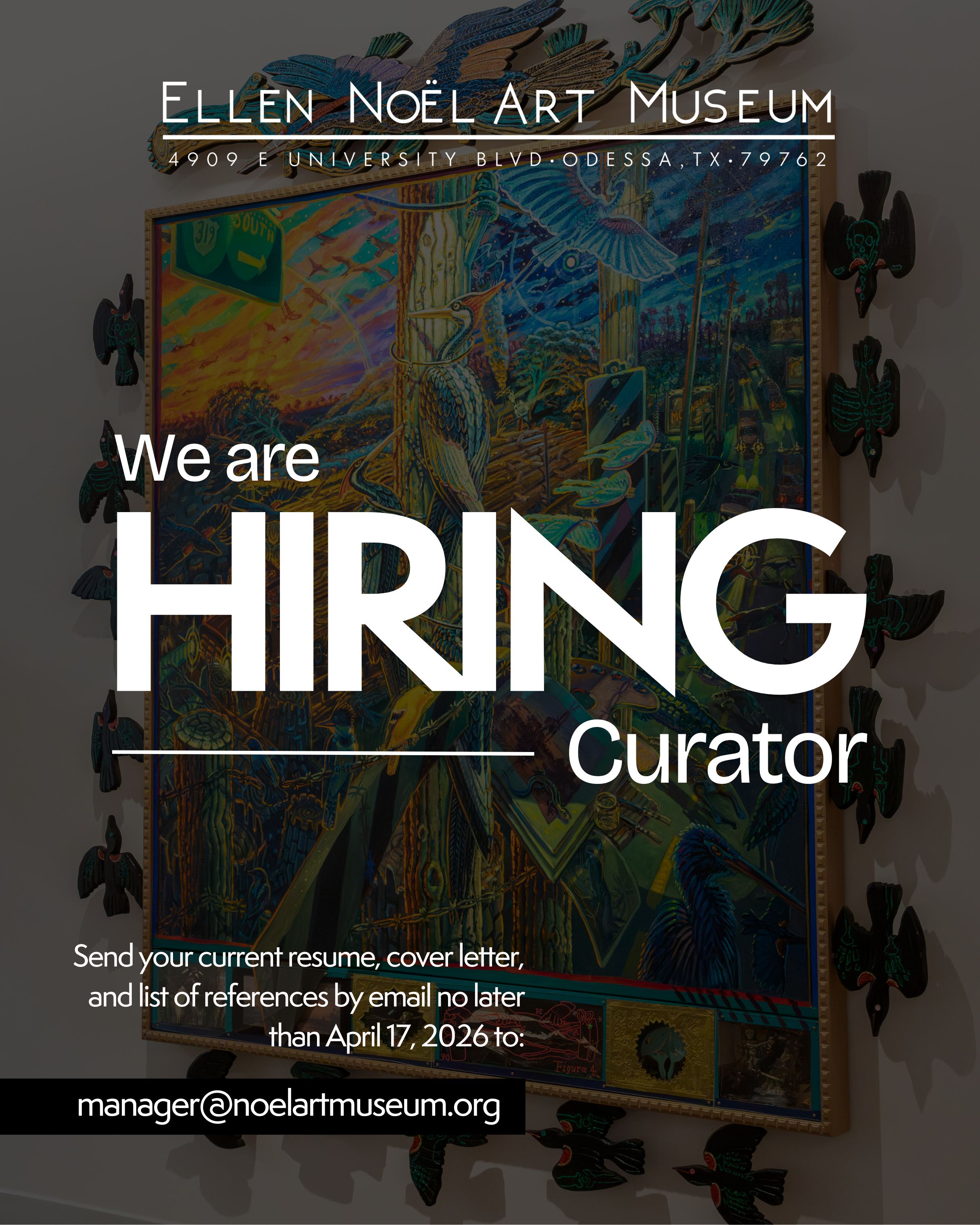 To apply, please submit your current resume, cover letter and list of three references by email no later than April 17, 2026 to Kara at manager@noelartmuseum.org