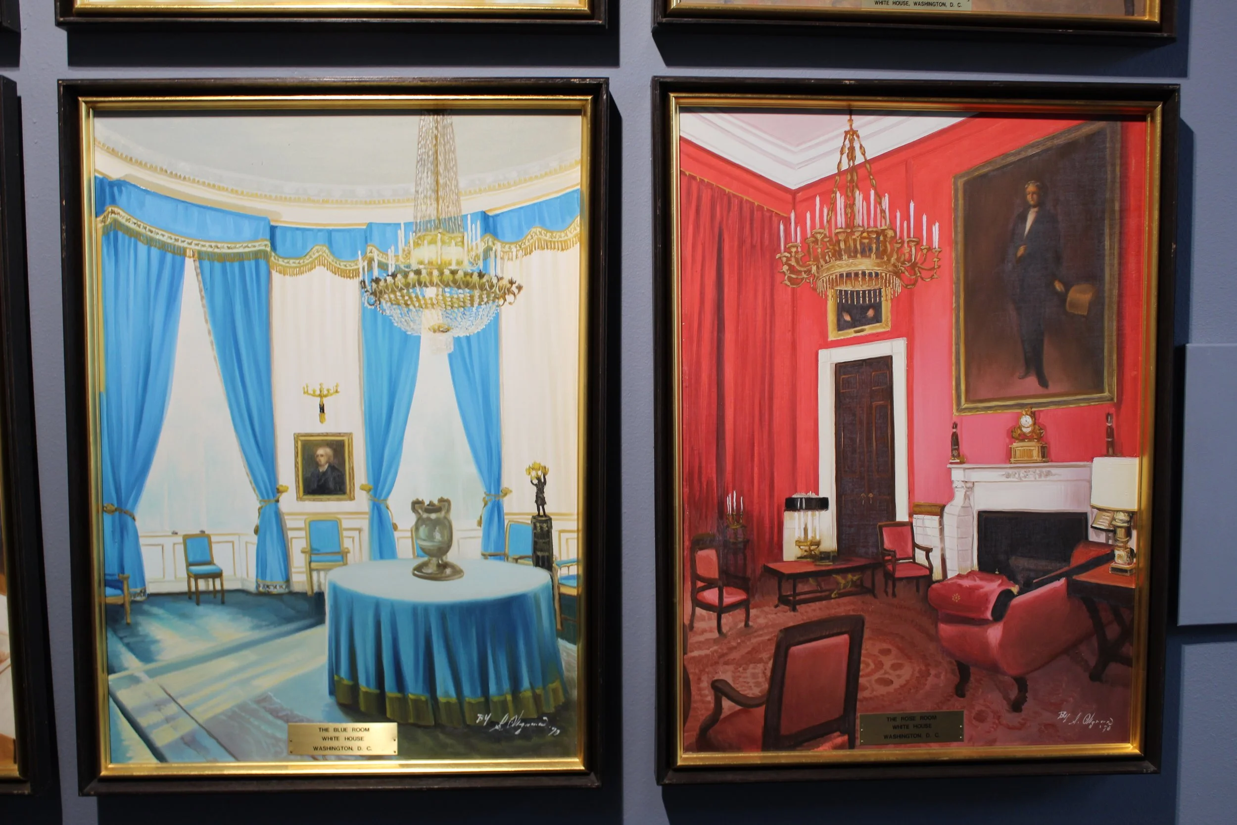 The White House, located at 1600 Pennsylvania Avenue in Washington, D.C., is more than just the residence of the President of the United States—it is a powerful emblem of the nation's democratic ideals, a working office, and a living museum. This exhibit gives our visitors the chance to enjoy a number of rooms and landscapes of the White House property. These pieces were all completed in 1970 and part of the Chandler Collection.